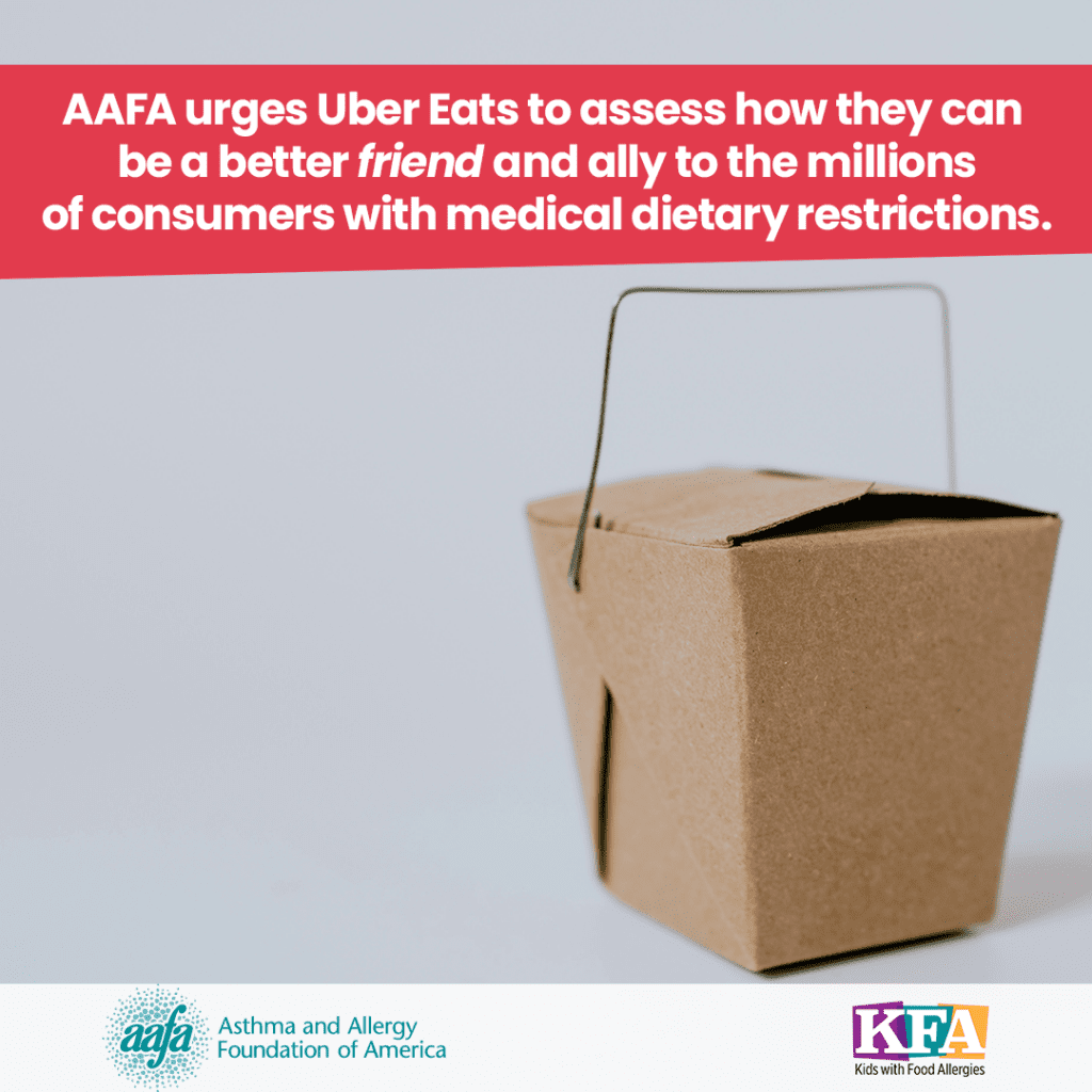AAFA urges Uber Eats to assess how they can be a better friend and ally to the millions of consumers with medical dietary restrictions.